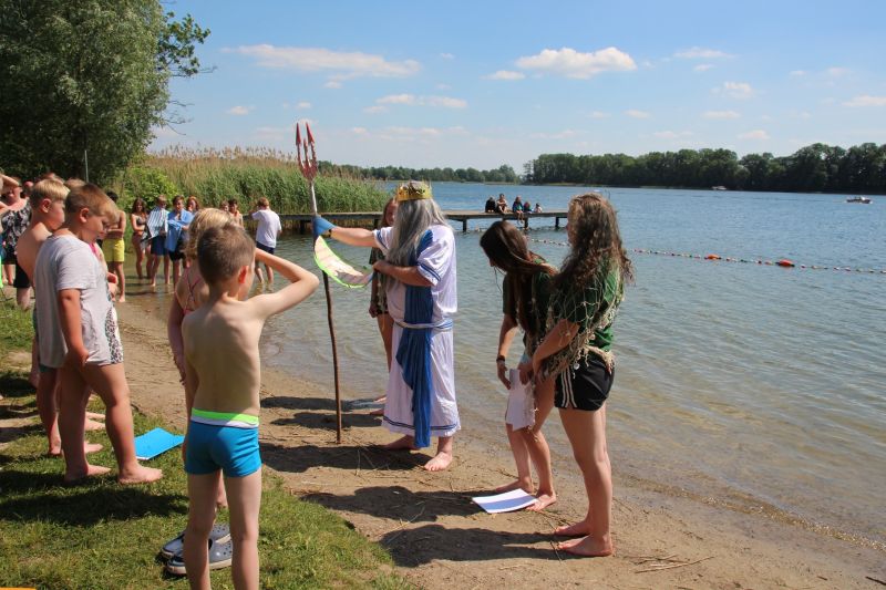 Das lange Himmelfahrtswochenende nutzen auch in diesem Jahr die Judoka von Budokan Brandenburg für ein gemeinsames Trainingscamp aller Altersklassen im „Jugenddorf am Ruppiner See“. Nach der Anreise im Reisebus der Havelbusgesellschaft begann der Donnerstag für die 64 Sportler und 14 Betreuer mit vielfältigen Aktivitäten. Während die jüngeren Sportler die Bedingungen für die Judo-Safari ablegten, bewältigte die Jugend einen fünf Kilometer langen Lauf entlang des Ruppiner Sees. Auch an den nächsten Tagen wurden die Sportanlagen für Soccer, Hockey, Beachvolleyball und Krafttraining genutzt. Höhepunkte des Wochenendes waren der zum zweiten Mal durchgeführte Biathlon-Wettkampf aus zwei Laufrunden und dem Schlagballzielwurf, in dem sich die vier Teams nichts schenkten und am Ende alle Teilnehmer mit einer Medaille belohnt wurden sowie das schon traditionelle Neptunfest, bei dem sieben Auserwählte zur Freude der anderen Teilnehmer die Neptuntaufe erhielten. Einen schönen Ausklang fand das Wochenende beim gemeinsamen Grillabend und dem anschließenden Lagerfeuer am Strand.