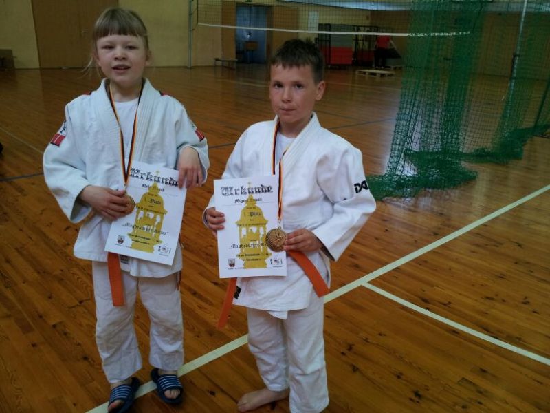 Der FSV 1895 Magdeburg richtete sein Traditions-Judoturnier „Magdeburger Reiter“ in diesem Jahr für Kämpfer der Altersklassen U11 und U15 aus. 125 Judoka aus fünf Bundesländern beteiligten sich am Turnier und kämpften auf hohem Niveau um die Medaillen. Budokan Trainer Wolfgang Link reiste mit zwei Sportlern der U11 an, die sich mit tollen Leistungen in ihren Gewichtsklassen durchsetzen und Goldmedaillen erkämpfen konnten. Miguel Sawall (32 kg) konnte seine guten Trainingsergebnisse der letzten Zeit beim Turnier bestätigen und besiegte seine drei Gegner mit verschiedenen Techniken vorzeitig. Nele Noack (33 kg) wurde viermal auf die Matte gerufen und konnte ihre Gegner ebenso überzeugend vor Ablauf der Kampfzeit bezwingen. Trainer Link freute sich besonders über verbesserten Leistungen im Bodenkampf, die bei beiden Aktiven zu verzeichnen war.