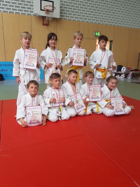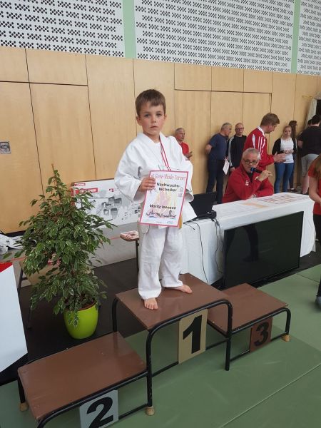 Moritz Isensee konnte in seiner Gewichtsgruppe alle Kämpfe vorzeitig mit vollem Punkt gewinnen und belegte den 1. Platz. Auf Grund seiner vielseitig angewandten Techniken wurde Moritz zusätzlich als bester Nachwuchstechniker mit einem Pokal ausgezeichnet. Ryan Klotz, Finnley Meißner und Niklas Rose konnten nach starken Kämpfen in ihren Gewichtsklassen 2. Plätze erkämpfen. Sophia Peters, Felix Langer, Artur Schultz, Madison Buder und Finn Ole Winkel holten Bronze.