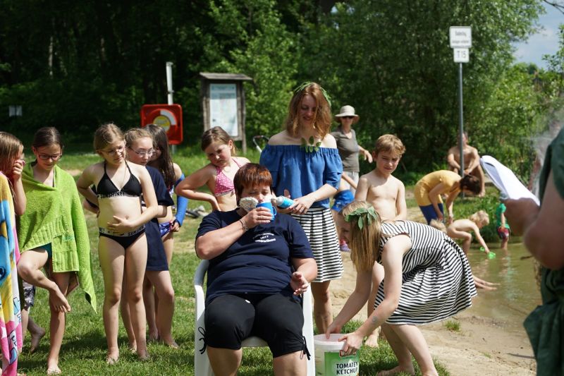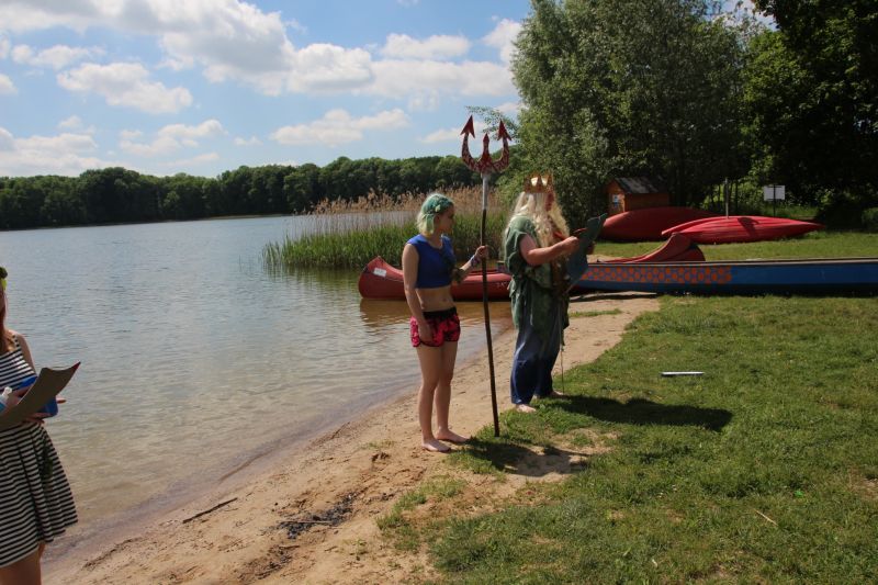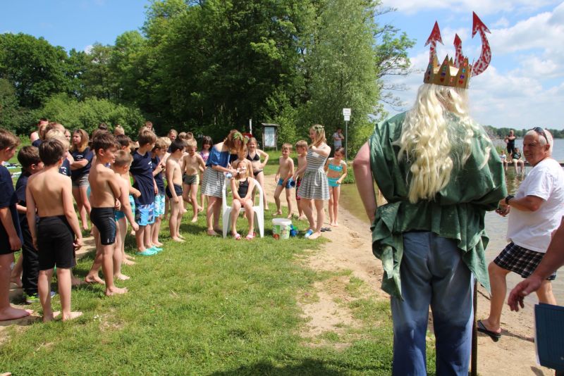 Ein besonderes Highlight war auch in diesem Jahr das Neptunfest, bei dem der Herrscher der Meere (Rettungsschwimmer Carsten Eichmüller) und seine Nixen wieder zahlreiche Sportler und zwei Trainer zur Freude aller Teilnehmer tauften.