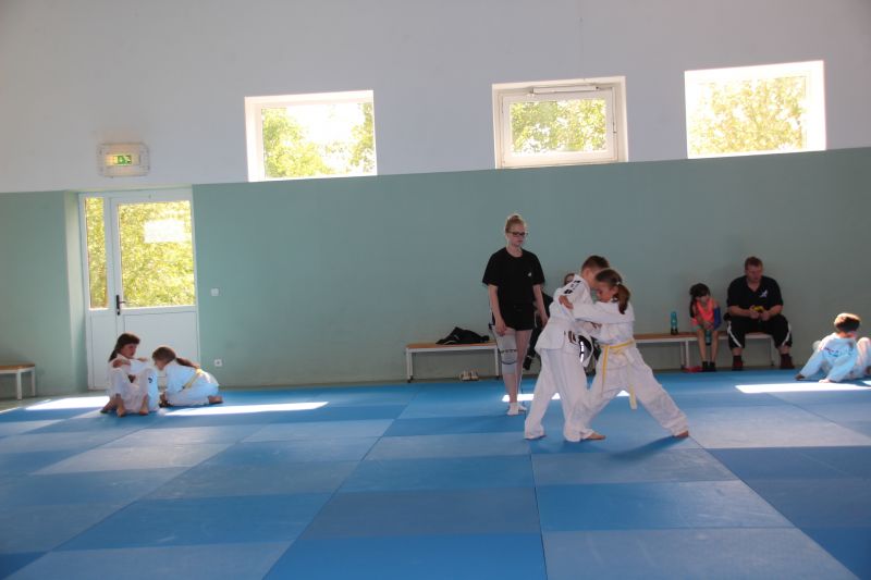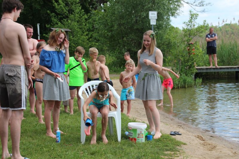 Das lange Himmelfahrtswochenende nutzten die Judoka vom Budokan Brandenburg für ein gemeinsames Trainingslager. 64 Sportler und 13 Trainer und Betreuer reisten im Reisebus der Havelbusgesellschaft nach Gnewikow, um dort, wie in den vergangenen Jahren, gemeinsam im „Jugenddorf am Ruppiner See“ zu trainieren und die Freizeit zu verbringen. Während die Jugendgruppe neben vielen anderen Aktivitäten in diesem Jahr mit Leihfahrrädern den Ruppiner See umrundete, erfüllten die kleineren Sportler die Bedingungen für die Judosafari. So kämpften sie mit Begeisterung beim Schlussweitsprung, Medizinballstoßen und dem 50m-Sprint um beste Leistungen und sammelten bei einem kleinen Judoturnier wichtige Punkte. Besonderer Beliebtheit erfreute sich das Tauziehen im weichen Sand eines Beachvolleyballfeldes. Neben Judo-, Kraft- und Lauftraining fanden alle Teilnehmer beim Soccer-Turnier, beim Hockey, Beachvolleyball, einem Geländespiel, Baden und Grillabend mit anschließendem Lagerfeuer Spaß und Abwechslung.