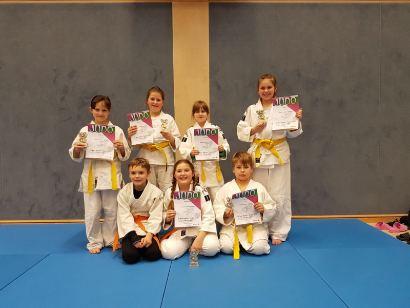 Am Sonntag betreute Trainer Sebastian Baumgardt das kleine Team der U9, das in der Mannschaftswertung den zweiten Platz belegte. Hier konnten sich Finnley Meißner bis 43 kg und Sophia Garbowski in der Gewichtsklasse bis 31 kg Goldmedaillen sichern. Chiara Madleen Dathe bis25 kg und Alexander Keller bis 28 kg erkämpften Bronze. Auch die Mannschaft der U12 von Trainer Rene‘ Weiß konnte in die Medaillenvergabe eingreifen. Zweitplatzierte wurden hier Guirola Laura Clavelo bis 28 kg und Larissa Amy Stengel bis 44 kg. Bronzeränge erzielten Lenny Sureck bis 46 kg, Sarah Seddig bis 44 kg und Madison Buder bis 48 kg. Marie Seddig bis 24 kg wurde Fünfte.