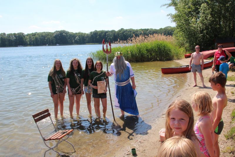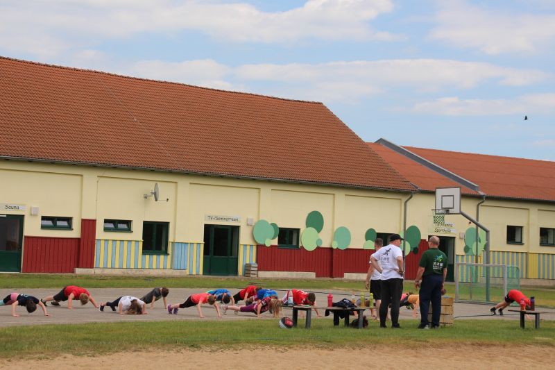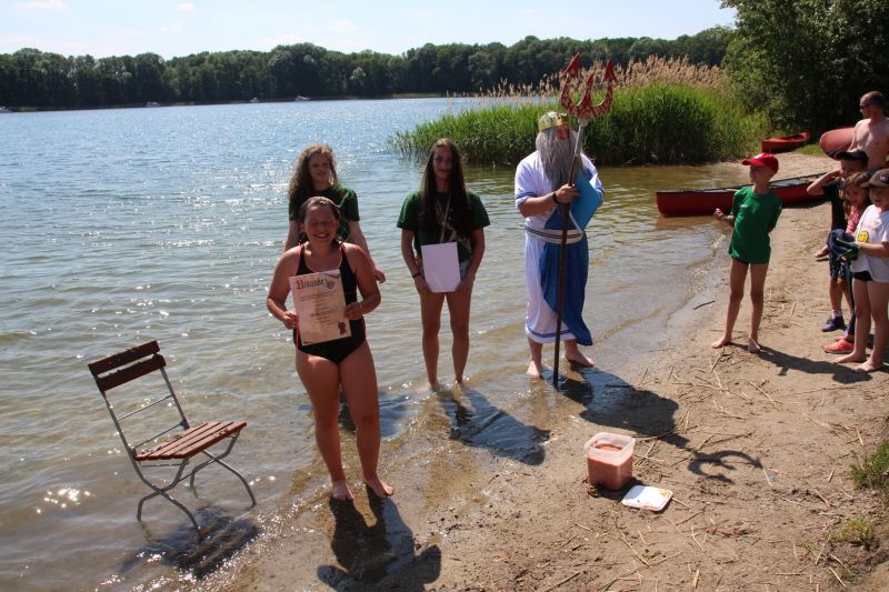 Das lange Himmelfahrtswochenende nutzen auch in diesem Jahr die Judoka von Budokan Brandenburg für ein gemeinsames Trainingscamp aller Altersklassen im „Jugenddorf am Ruppiner See“. Nach der Anreise im Reisebus der Havelbusgesellschaft begann der Donnerstag für die 64 Sportler und 14 Betreuer mit vielfältigen Aktivitäten. Während die jüngeren Sportler die Bedingungen für die Judo-Safari ablegten, bewältigte die Jugend einen fünf Kilometer langen Lauf entlang des Ruppiner Sees. Auch an den nächsten Tagen wurden die Sportanlagen für Soccer, Hockey, Beachvolleyball und Krafttraining genutzt. Höhepunkte des Wochenendes waren der zum zweiten Mal durchgeführte Biathlon-Wettkampf aus zwei Laufrunden und dem Schlagballzielwurf, in dem sich die vier Teams nichts schenkten und am Ende alle Teilnehmer mit einer Medaille belohnt wurden sowie das schon traditionelle Neptunfest, bei dem sieben Auserwählte zur Freude der anderen Teilnehmer die Neptuntaufe erhielten. Einen schönen Ausklang fand das Wochenende beim gemeinsamen Grillabend und dem anschließenden Lagerfeuer am Strand.
