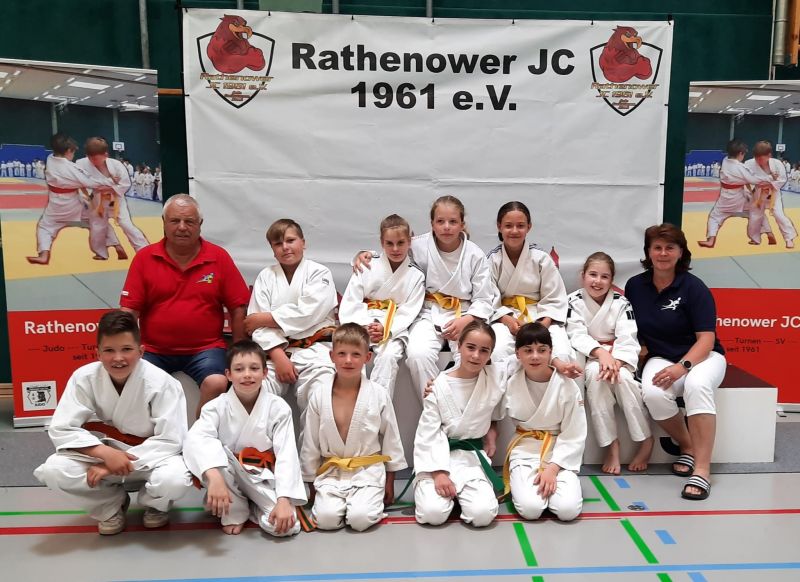 Die Judoka von Budokan Brandenburg beteiligten sich erstmals nach langer Corona bedingter Wettkampfpause an den Bezirksmeisterschaften West der Altersklassen U11 und U13, die in der Rathenower Havellandhalle ausgetragen wurden.Die von ihren Trainern Mandy Schönherr, Olaf Roock und Wolfgang Link betreuten Sportler und Sportlerinnen konnten sich gut in Szene setzen und für die in zwei Wochen stattfindenden Landesjugendspiele qualifizieren. Den 1. Platz erkämpfte Stella Kühn in ihrer Gewichtsklasse bis 57 kg. Silbermedaillen gingen an Hanni Brock (36 kg), Paul Albrecht (31 kg) und Leonie Reimann (48 kg). Mit Bronze geehrt wurden Alexander Keller (46 kg), Finnley Meißner (+55 kg), Marlen Gesche (43 kg), Elisabeth Schlicht (40 kg) und Stella Scherneck (40 kg). John Krause rundete das gute Abschneiden mit Platz sieben in der Gewichtsklasse bis 28 kg ab.